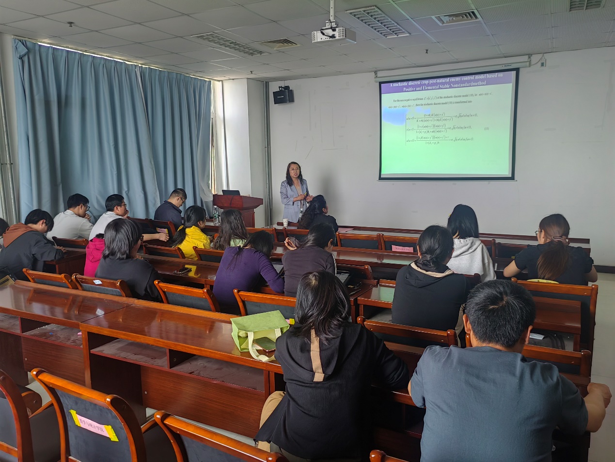 为进一步推动公司生物数学团队的高质量发展和提高骨干教师科学研究水平,公司于2025年4月18日诚邀鞍山师范公司数学公司经理刘兵教授,在敬业楼1501对公司师生做题为“Stochastic effects on a discrete crop-pest-natural enemy model”的学术报告。会议由苏有慧经理主持。