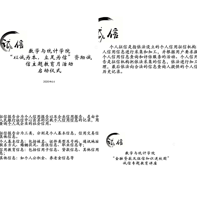 通过资助诚信主题教育月活动的顺利开展,帮助同学们将征信知识深入人心,做到诚信教育有深度、有温度、有广度。促使员工树立诚信观念、增强法律意识,有效将诚信教育转化为老员工的自觉素养与行为,坚决践行社会主义核心价值观。