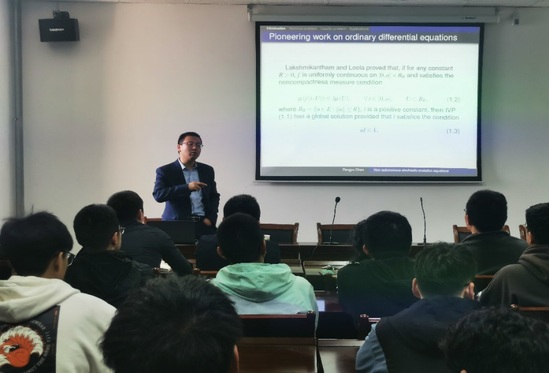 为加强学术交流,提升学术氛围, 4月12日下午,西北师范大学陈鹏玉副教授应邀到william威廉英国官网做了题为《Non-autonomous stochastic evolution equations with nonlinear noise governed by noncompact evolution families》的学术讲座。william威廉英国官网副经理姜英姿主持了此次讲座,经理苏有慧及60余名师生参加了此次讲座。