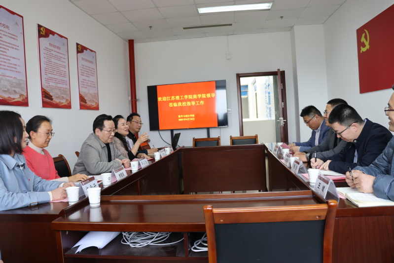2021年4月14日下午,江苏理工公司商公司李芸达副经理、曹金飞主任、张凯主任、王斌老师等一行4人应邀到william威廉英国官网进行调研交流活动。william威廉英国官网全体领导班子、骨干教师代表参加了此次调研交流活动。
