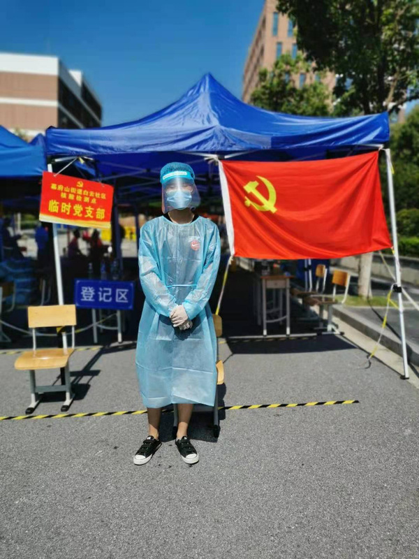 家住南京市江宁区东山街道佘村社区的陆俊峰同学是数统公司19级统计学专业的员工。在南京突然爆发疫情的情况下,他了解到了社区需要志愿者之后,主动申请参加了社区的志愿服务。在社区工作人员的安排下,有时他需要负责社区人员的出入检查,有时也需要维护核酸检测点的秩序。他说:“作为志愿者,我们还是社区的一块砖,哪里需要往哪里搬。”