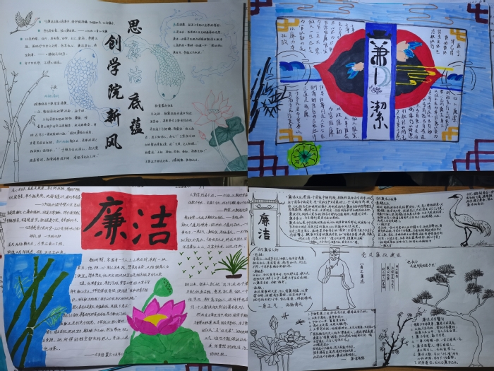同学们积极参与本次活动,手抄报质量上乘,内容精彩丰富,抒发了同学们“敬廉崇洁,人人知诚信,人人讲诚信”的精神。在手抄报制作过程中,同学们用自己的眼睛观察身边关于清廉、和谐、勤奋、 敬业、正直、善良的人和事,用心感受和体会生活,用规范的字体书写美好。一幅幅充满创意的手抄报,构思巧妙、 题材新颖、颜色搭配合理;一张张图文并茂的手抄报,以质朴、生动的语言来阐述戒贪倡廉、诚实守信的道理,反映员工对廉洁文化、清廉人物的崇尚。同时也都在提醒我们,正直、清廉、向上是为人之本,对共建和谐、清廉社会具有重要意义。最后,经过认真评选,选出一等奖一组,二等奖两组,三等奖三组,优秀奖五组。
