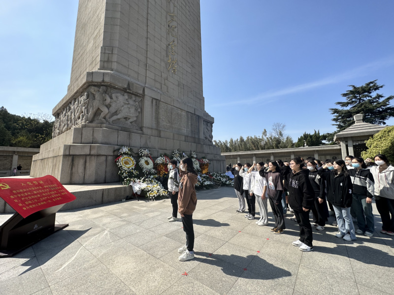 在雄伟庄严的淮海烈士纪念塔前,全体庄严肃立,向为中国人民解放事业、淮海战役胜利英勇献身的烈士默哀并敬献鲜花。员工党员代表俞萧桠同学向烈士献词,表达了对烈士的哀悼和感恩之情,她号召全体同学要缅怀革命先烈,弘扬英雄精神,用优异成绩和实际行动报效祖国。