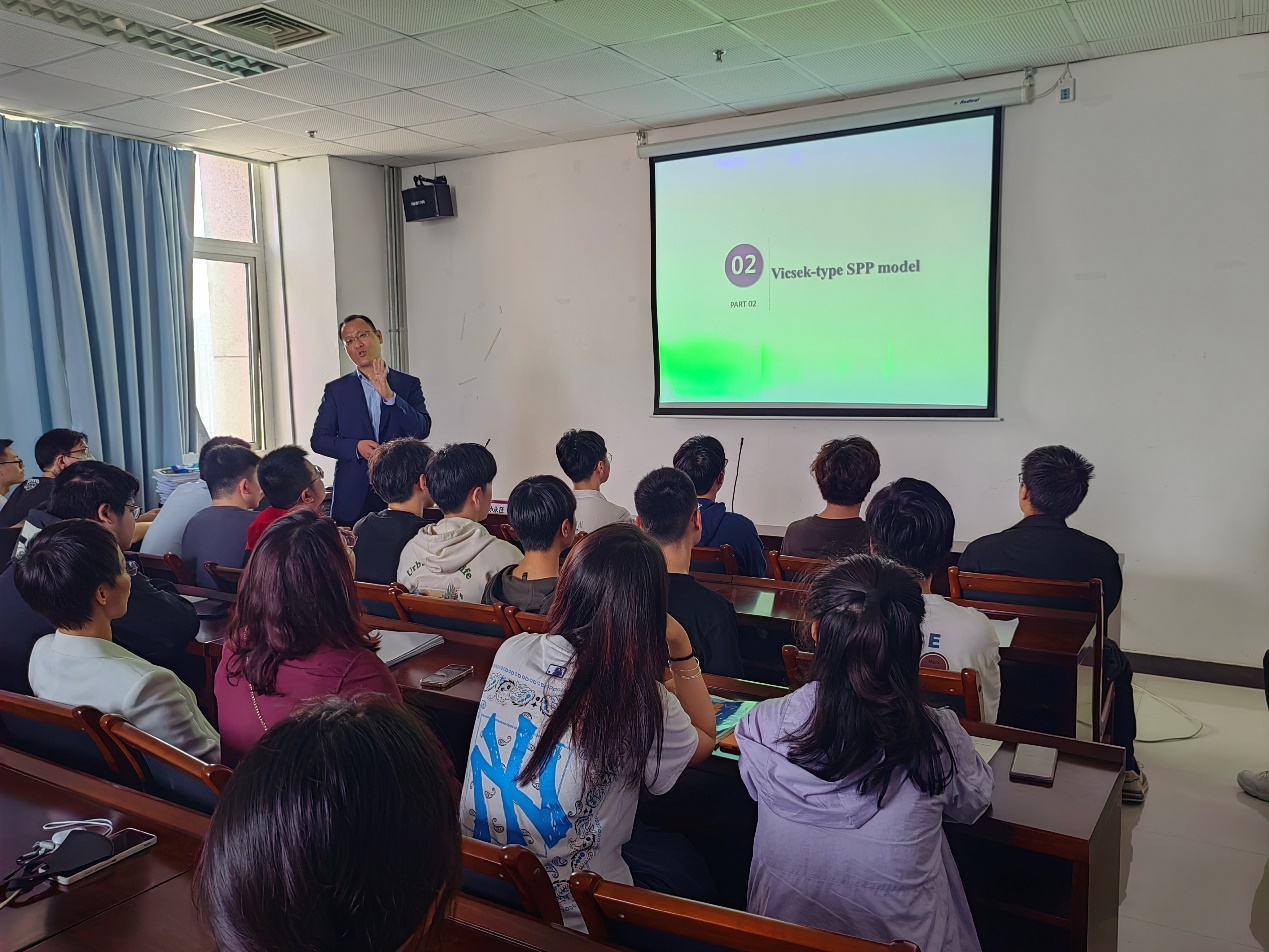 孙永征教授首先从多智能体网络群集动力学模型,揭示多智能体系统群集行为的涌现机制。然后着重分析了噪声对多智能体系统的影响:当噪声强度足够小时,多智能体系统才能出现有序的群集运动,反之噪声会破坏有序的群集运动,但噪声也可能会增强群集行为。最后,孙教授与公司师生进行了深入的学术交流,解答了部分师生提出的问题。