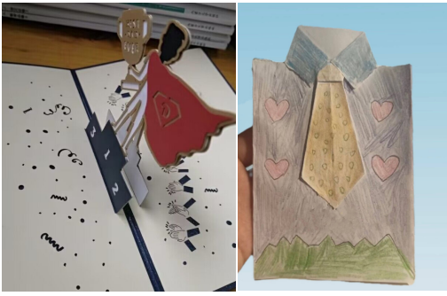 此次活动以表达对父亲的爱意为契机,引导同学们通过设计专属卡片,写上给父亲的一段话,画出心中的父爱,心怀感恩之情,促进与父亲的情感交流。活动发布,即凭借温情特色和独具号召力的主题,得到同学们的高度认可和积极参与。活动征集到的作品也是满满地流露出真挚的感情,在同学们精心制作的贺卡中,不同风格的创意更是让人眼前一亮,有穿衬衫、打领带的职场父亲,有卡通化、抽象派的休闲风格……手绘、刺绣,不同形式却都直白的表达出他们最想说的爱,那就是——父爱如山,你永远是我的超级英雄……