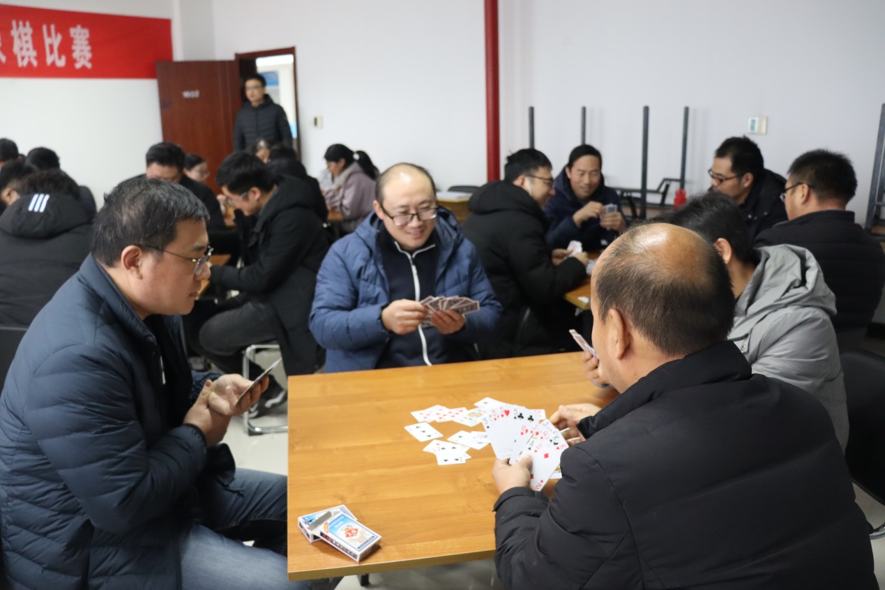 为丰富公司教职工业余文化生活,增进教职工之间的沟通交流,缓解工作压力,增强工会凝聚力,近期,公司在校工会棋牌室举行教职工掼蛋比赛。一共18对选手报名参赛。最终评选出一二三等奖。