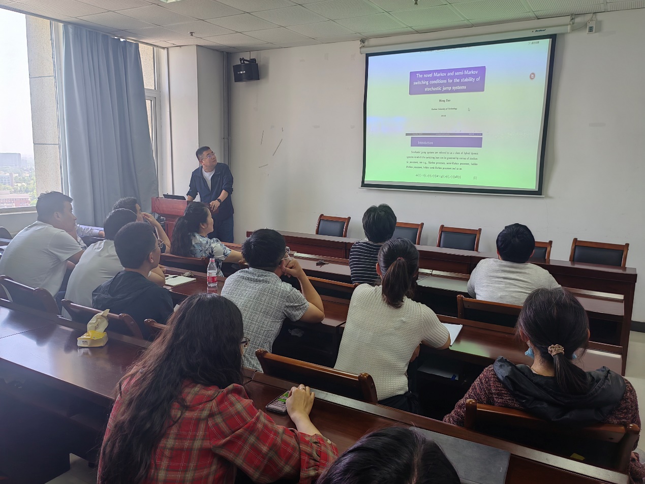 然后由王豹教授做几类随机切换系统的新型稳定性判别条件的报告。该报告介绍了几类随机切换系统,如连续时间马尔可夫切换系统、连续时间半马尔可夫切换系统、离散时间半马尔可夫切换系统稳定分析与控制器求解问题的最新研究结果。