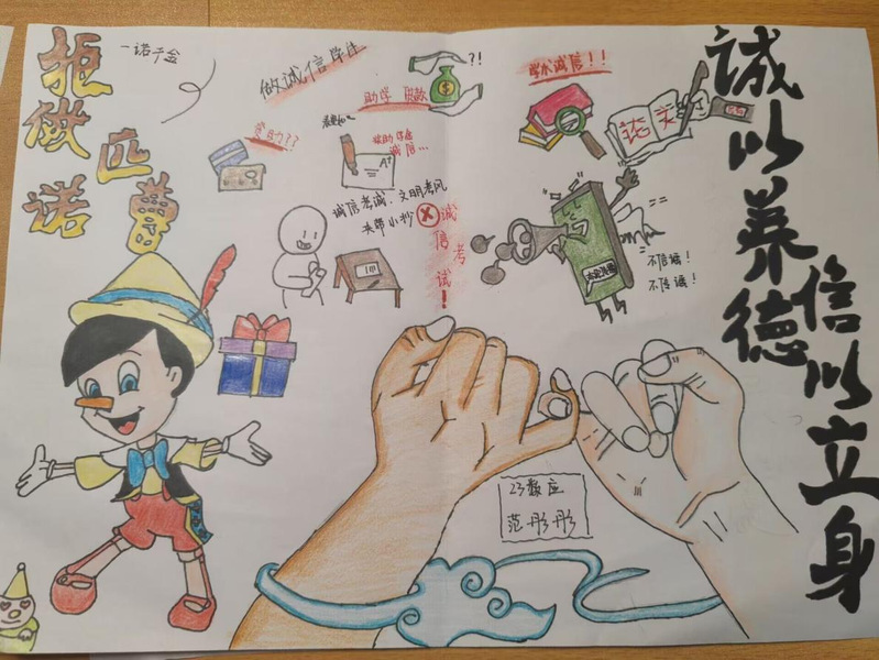 此次活动受到了同学们的热烈响应和积极参与。员工通过查阅丰富的诚信相关故事和资料,深入理解了诚信在社会各领域中的核心价值和重要性,随后将自身的理解和感悟融入画作之中,以独特的创意和熟练的技艺展现了诚信的深远意义。本次活动引导同学们认识到了诚信的重要性,了解到了诚信作为道德准则所发挥的重要作用。诚信不仅是做人做事的道德核心,也是道德教育与素质教育的重要内容,从而促使同学们牢记守信为荣,失信可耻的道德理念,养成诚信的行为习惯。
