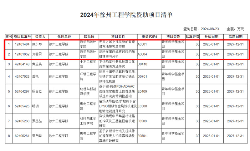 近日,国家自然科学基金委员会公布了2024年度的国家自科基金立项情况,公司刘若男老师申报的《淀粉样蛋白成核过程的随机建模与分析》和顾东琴老师申报的《无界区域上几类新的有理谱方法研究及应用》获批青年科学基金项目立项。