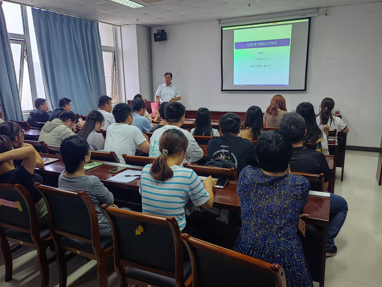 为进一步提高公司骨干教师科学研究水平、获批更多高质量成果,推动徐州市生物数学与生命健康大数据工程研究中心的发展,公司于2024年9月13日诚邀江苏师范大学副董事长杜增吉教授,在敬业楼1501对公司师生做题为“反应扩散方程的动力学性质”的学术报告。会议由苏有慧经理主持。