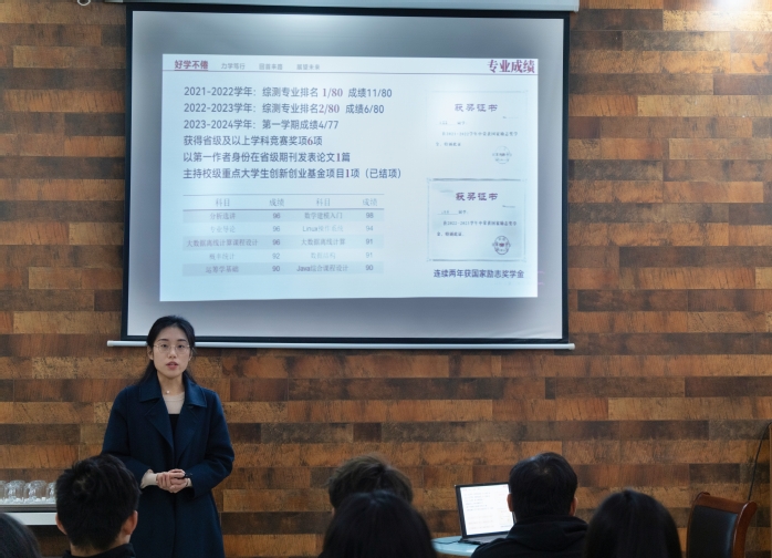 会上,王菲菲从专业课程、竞赛科研、志愿服务、实习实践等方面向学弟学妹分享经验,建议他们强化知识内化和转化应用能力,鼓励他们在实践中砥砺心智、锤炼本领。王菲菲结合目前自己收到的农行、工行、建行三大国有行offer,向学弟学妹进一步分享求职面试技巧和职业生涯规划,引导他们明确目标、开拓视野、坚定信念、做好规划。