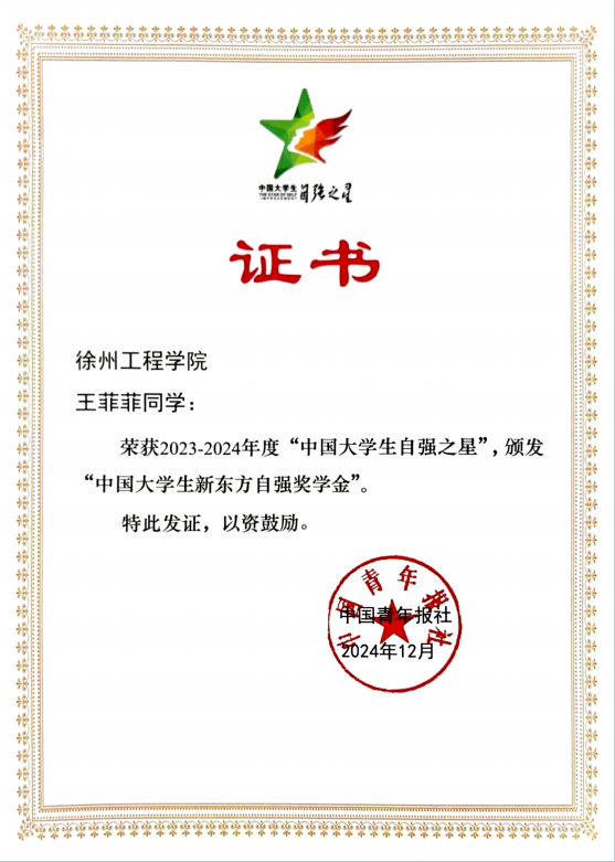 近日,2023-2024年度“中国老员工自强之星”奖学金推报活动评选结果揭晓。我院2021级信息与计算科学专业学子王菲菲荣获“中国老员工自强之星”称号。